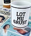 Koffie-mok met dialect-print 'Lot Mij Grust'. Lees meer..