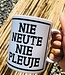 Beker met de bekende Gentse dialect uitdrukking 'Nie Neute Nie Pleuje'. Een absolute must have voor elke Gentenaar of Gent-lover. Lees meer..
