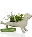 Hilarische bloempot uit keramiek, in de vorm van een plassende hond. Als je je plant te veel water geeft, dan plast de hond het overtollige water eruit op een groen schaaltje dat gras voorstelt. Niet alleen geweldig grappig, maar tegelijk ook erg praktisch, want je plant krijgt nooit teveel water. Natuurlijk is het ook een absolute giller om cadeau te geven aan elke hondenliefhebber en plantenliefhebber.