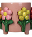 Multi-kleurige dolomiet bloempot, bezet met 3D bloemetjes op een groene steel. Ideaal voor een vroli..