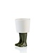 Porseleinen bloempot die staat op twee rubberlaarzen. Met waterdichte beglazing aan de binnenkant. De handgemaakte laarzen maken elk bloempotje uniek met kleine verschillen in vorm en kleur.