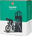 Mooie zwarte boekensteun met daarop het silhouet van een wielrenner in een berglandschap. De onderka..