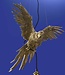 Buitengewone plafondlamp in de vorm van een vliegende papegaai. Hij is gemaakt van hoogwaardig polyresin en afgewerkt met een gouden coating.