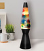 Deze lavalamp in raketvorm en met zwarte voet maakt veelkleurige bollen, wat een extra betoverend sc..