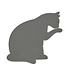 Panonderzetter in de vorm van een likkende poes. Gemakkelijk op te bergen op koelkastdeuren en andere metalen dragers want de onderzetter is magnetisch.