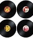 Set van 4 vinyl placemats, ideaal voor wie van retro & vintage producten houdt. Ze hebben allemaal hun eigen unieke label en worden geleverd in een vintage LP-hoes.