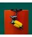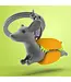 Metalen sleutelhanger in de vorm van een teckel verpakt als hotdog.