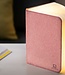 Ongewoon decoratieve lamp in de vorm van een boek, met cover bekleed in roze stof. Gesloten lijkt deze lamp een gewoon boek, maar geopend verandert het boek in een sculpturale sfeerlamp om bij te lezen. Topcadeau voor elke boekenliefhebber. Lees meer..