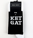 Sokken met opschrift 'Ket Gat' (= ik heb het gehad). Gemaakt uit katoen. Lees meer..