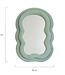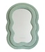 Asymmetrisch golvende, groene spiegel bekleed met zachte teddystof. Een uniek en trendy ontwerp dat elke kaptafel of gelijk welke hoek bij jou thuis een bijzonder hip tintje zal geven. Je kunt hem op de grond zetten of aan de muur hangen dankzij de twee h Lees meer..