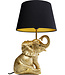 Sfeerlamp in de vorm van een blije olifant met een zwarte lampenkap. Een combinatie van een beeldsculptuur en lamp in één (exclusief bulb).