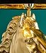Indrukwekkende tafellamp, bestaande uit een krachtig gouden paardenkop met daarboven een gitzwarte l..