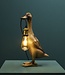Dierenlamp in de vorm van een rechtopstaande, gouden eend. Een combinatie van een beeldsculptuur en lamp in één (lichtbulb niet inbegrepen). Lees meer..