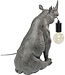 Deze bijzondere lamp in de vorm van een grijze neushoorn brengt een buitengewone safarisfeer in huis..