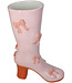 Vaas, ontworpen in de vorm van een laars met strikjes. Plaats er een fijn boeketje in voor een speel..