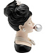 Deze decoratieve vaas verleidt met zijn speelse ontwerp, waarop een elegante vrouw te zien is die een bubbel blaast met haar kauwgom. De zilveren bubbel en parelsieraden springen in het oog, geaccentueerd door het zwarte haar en de zwarte kleding. Lees meer..