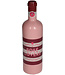 Elegante vaas in de vorm van een fles rosé wijn. De glanzende roze afwerking met wijnrode en zilver..