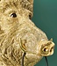 Decoratieve, gouden sfeerlamp voor aan de muur, in de vorm van een everzwijnenkop. Een combinatie va..