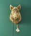 Decoratieve, gouden sfeerlamp voor aan de muur, in de vorm van een everzwijnenkop. Een combinatie van een beeldsculptuur en lamp in één (exclusief bulb). O ja, hij heet Willy.